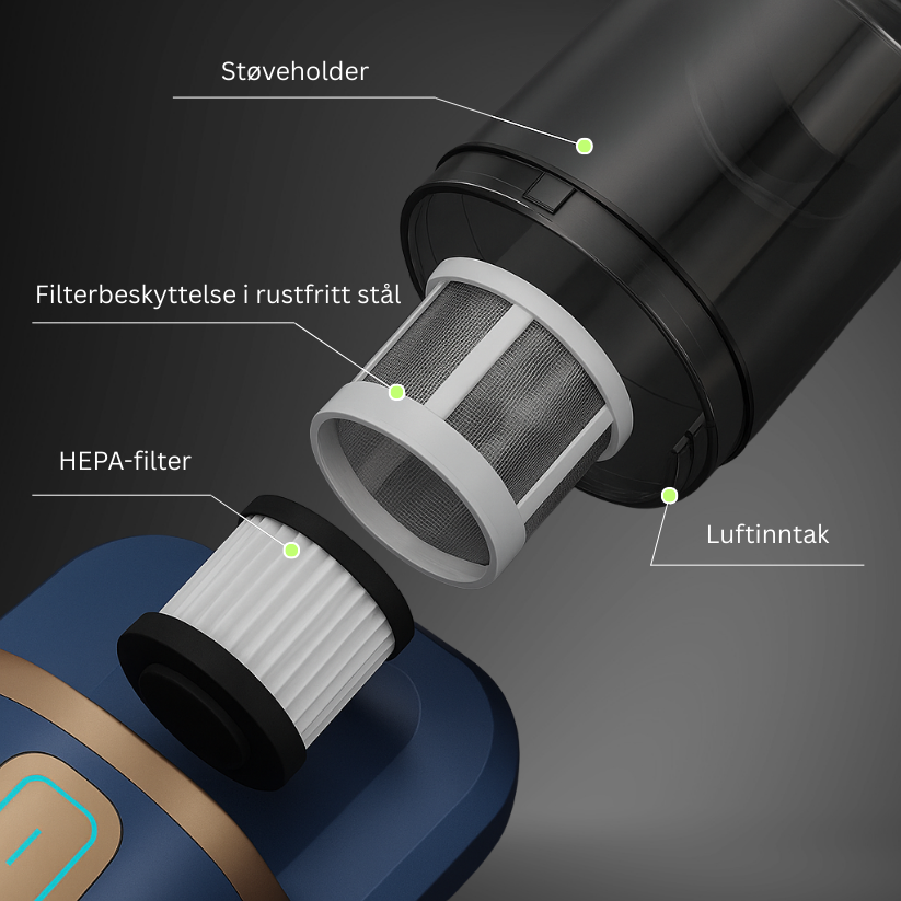 | Gjenbrukbart HEPA-filter og vaskbart filter i rustfritt stål | ||